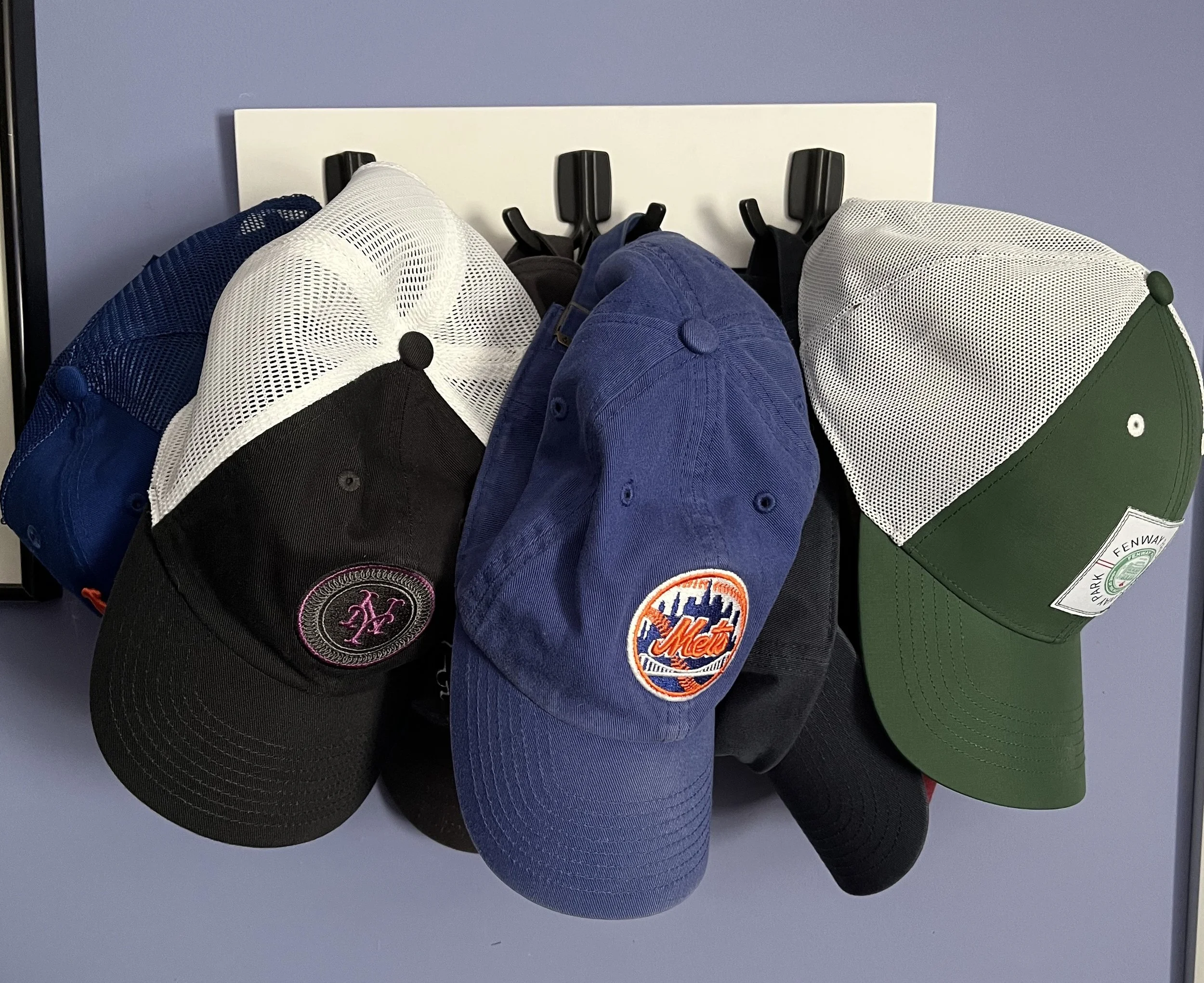 Back when I had just a couple of hats in the rotation, I kept them on my closet doorknob.