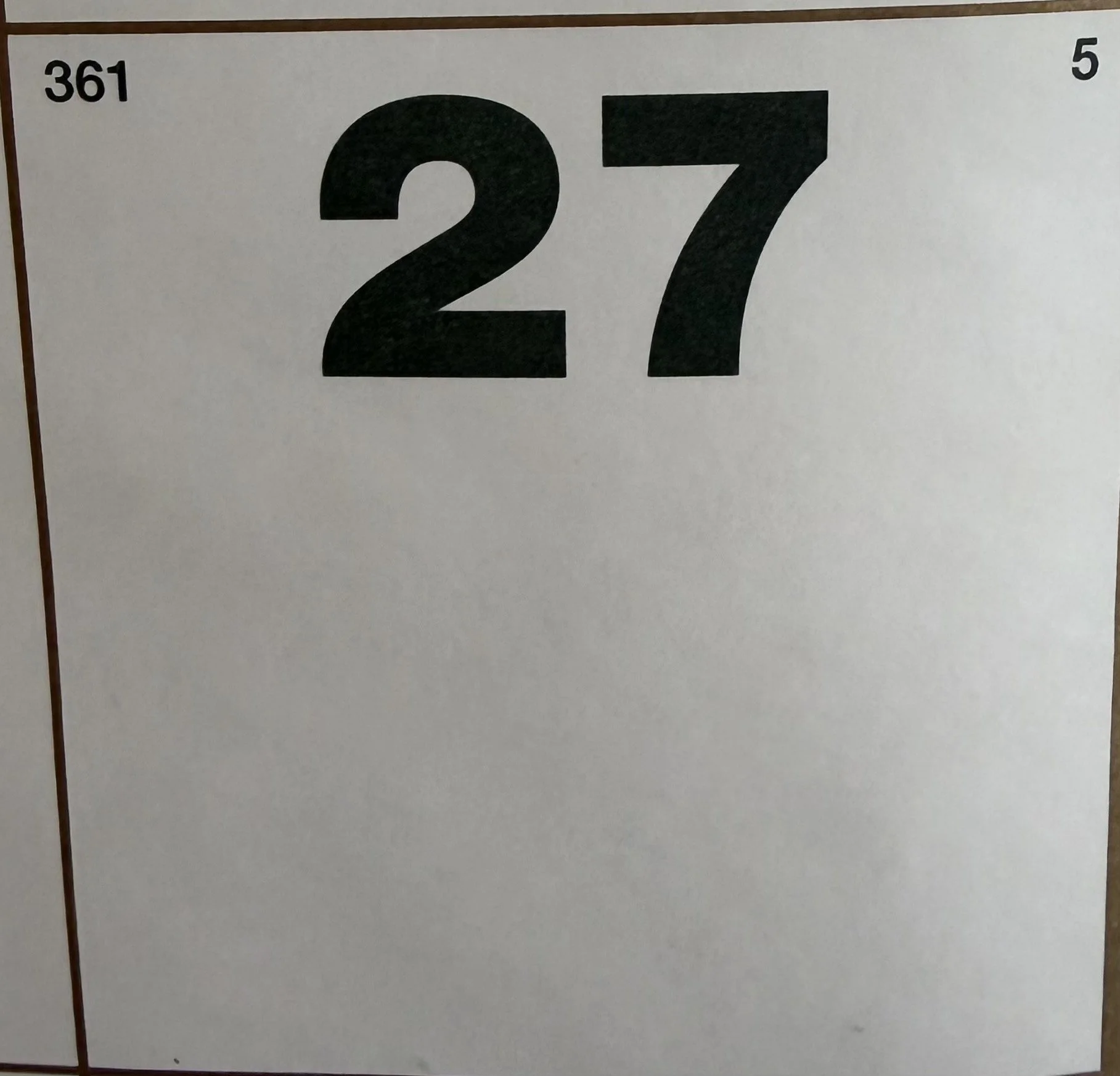 The 5 is the key here. December 27th is truly the 361st day of the year. No argument from me there. But I would argue there’s only 4 days left in the year - the calendar is including December 27th when it says 5 days left in the year.