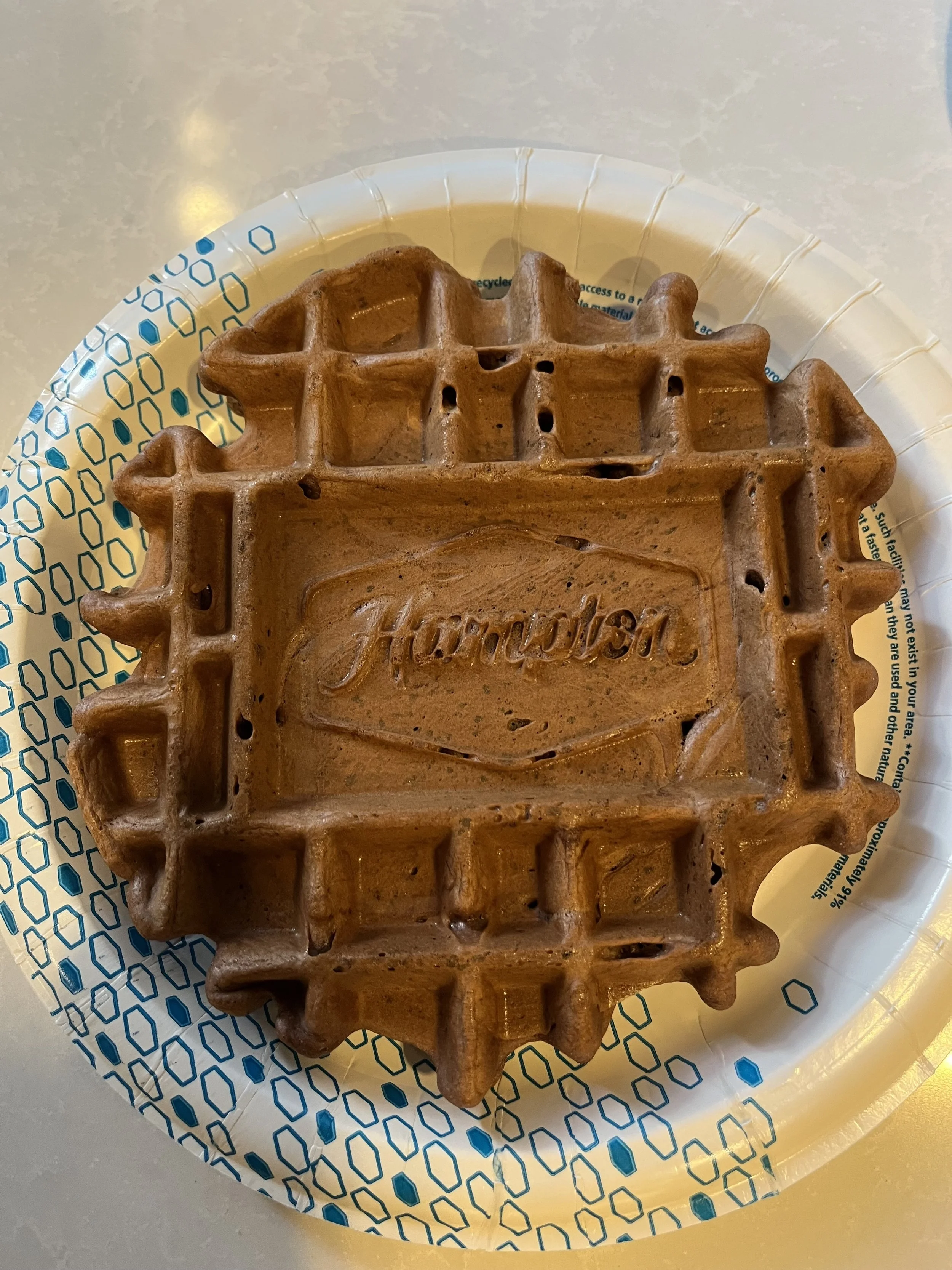 But the waffle itself turned out picture-perfect, with the Hampton logo waffle ironed-on and all.