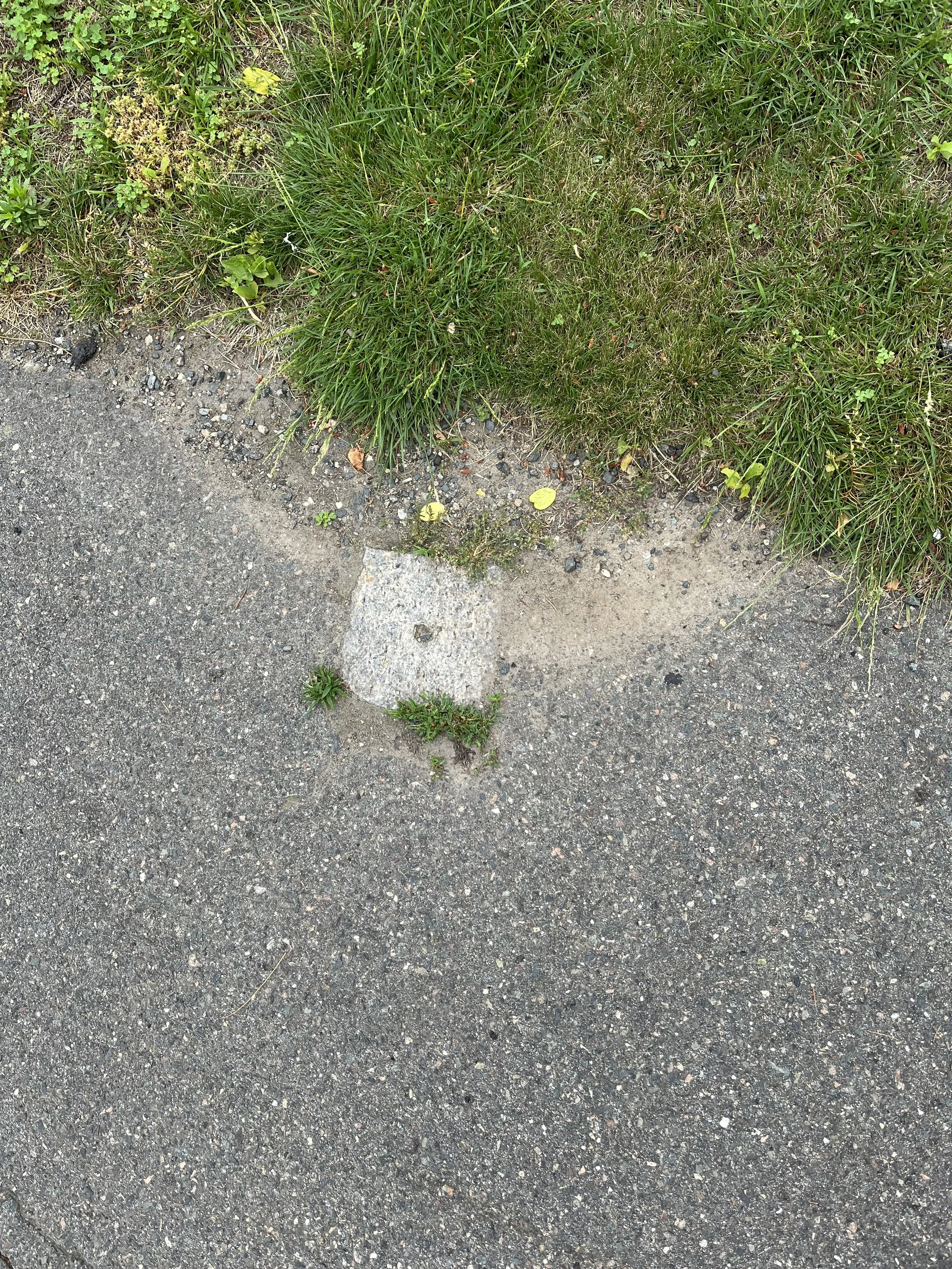 Sometimes the stones are obvious, clear as day on the sidewalk, like the one at the top of this post. Sometimes people mow around them on their grass, if they’re a corner property. Some of them can be buried on someone’s property, as you can (barely) see above and to the right.