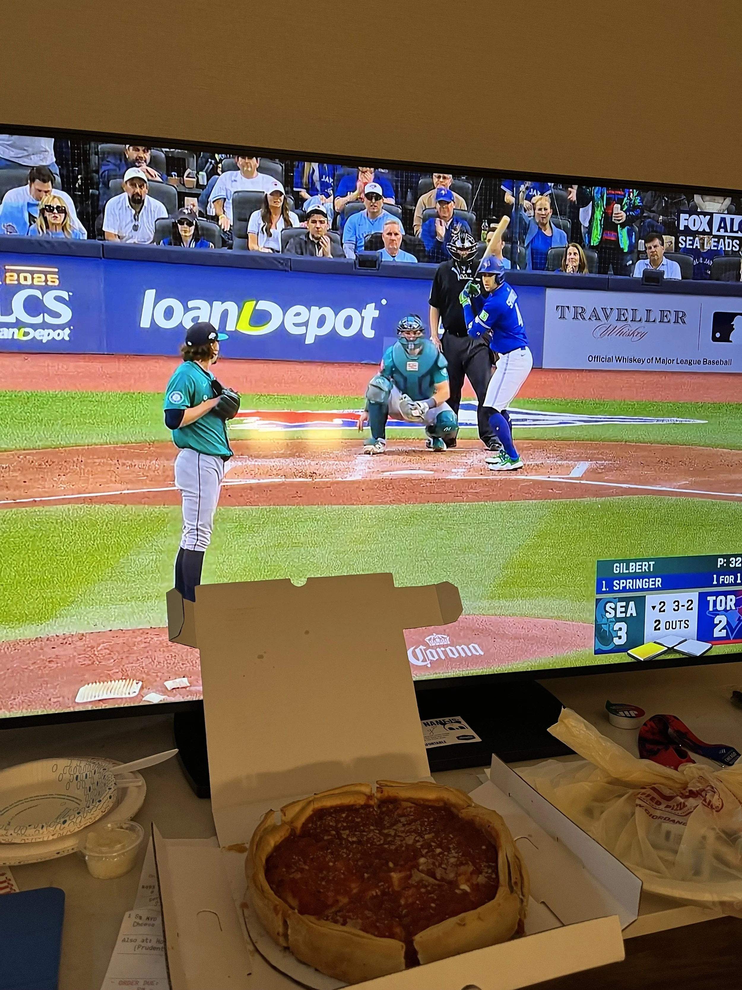 We did still visit that restaurant we were thinking about having takeout from the night before the marathon - we got our deep dish pizza there for the Monday post-marathon dinner. Last year we ate the deep dish while watching the Mets win an NLCS game. This year we just watched the ALCS.