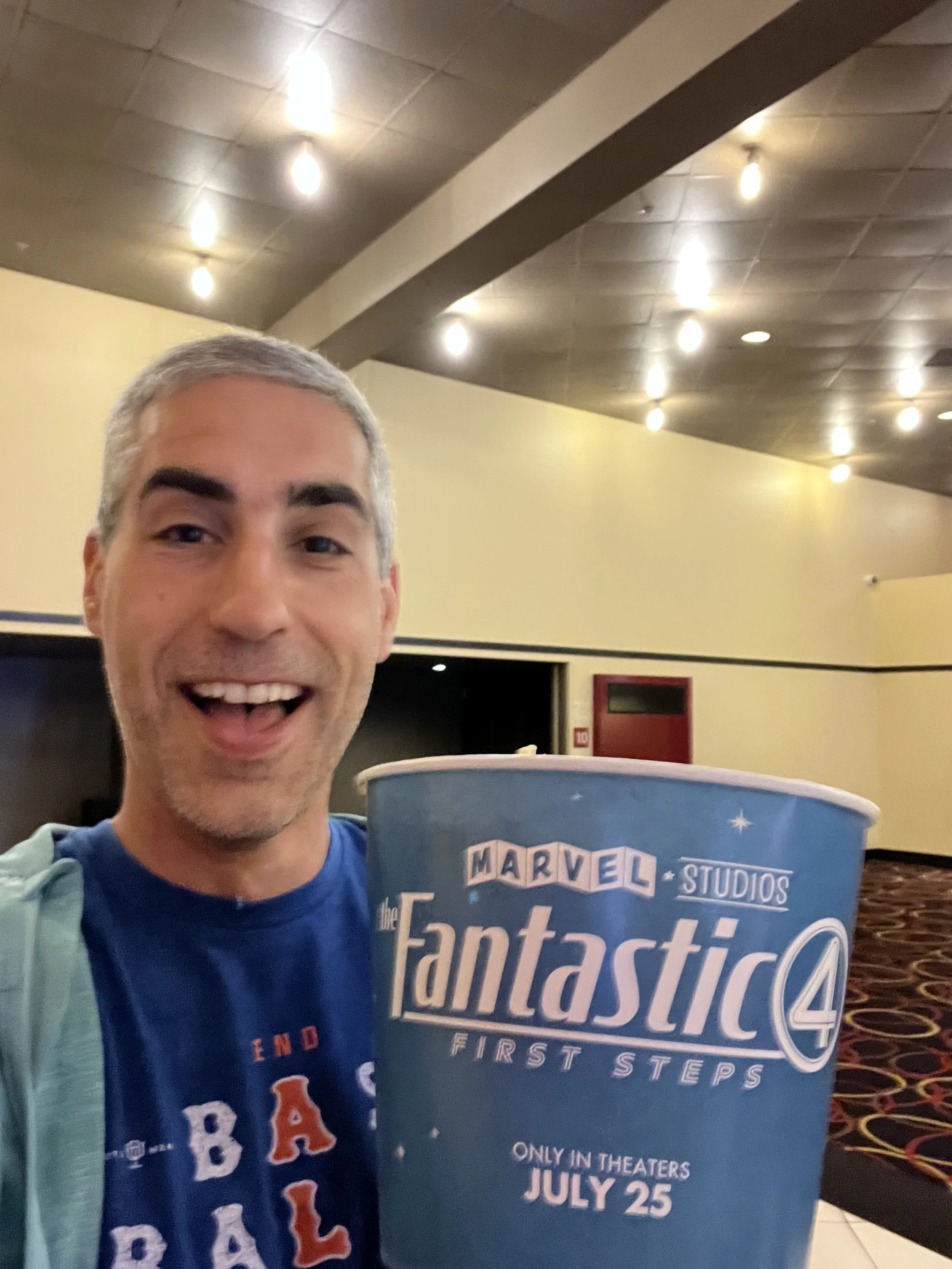 There were no Fantastic 4 cardboard cutouts to take a picture with so I was worried about what I should post and then LOOK AT THAT POPCORN BUCKET!