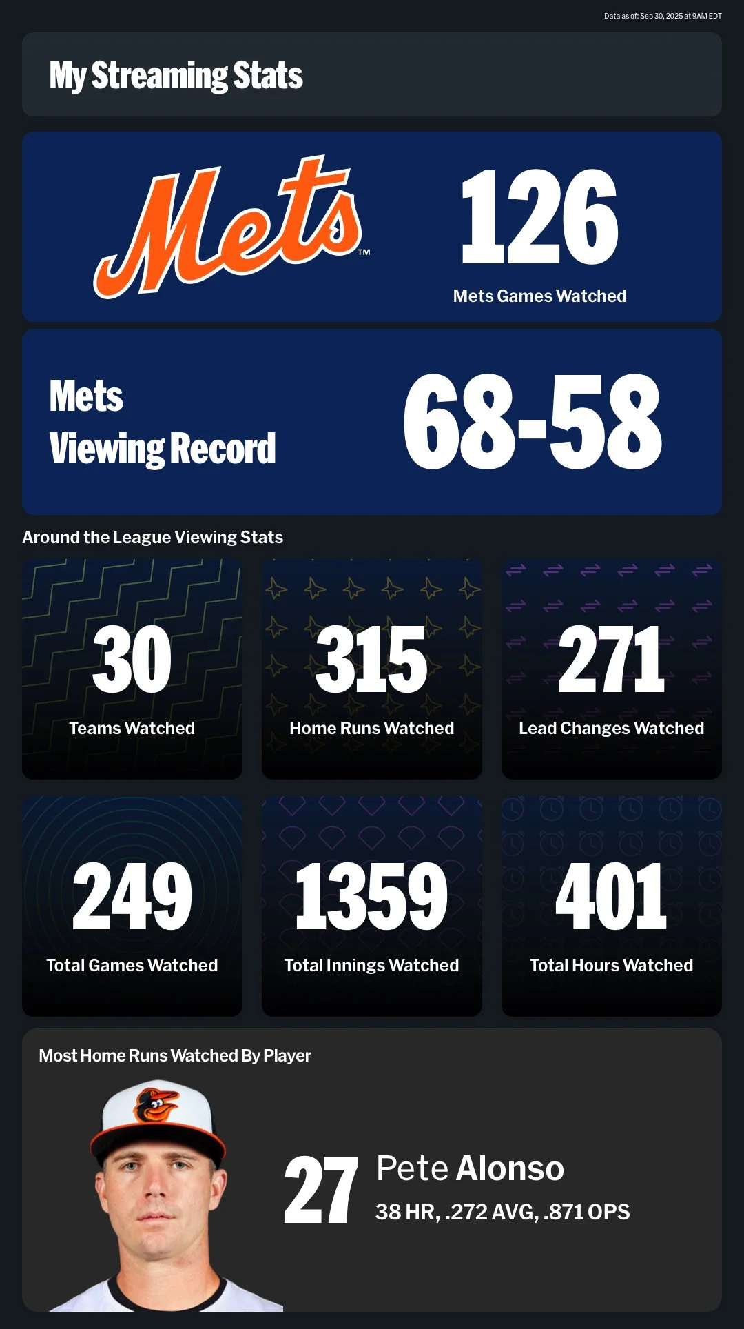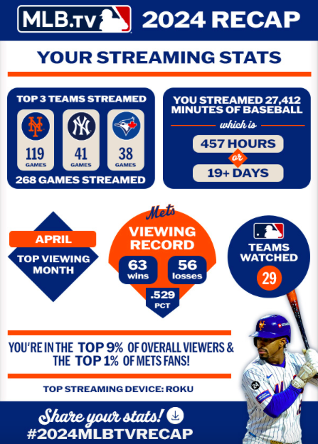 Last year I got a cool wrap-up of my baseball watching on the MLB.TV app - that’s what you see at the left.