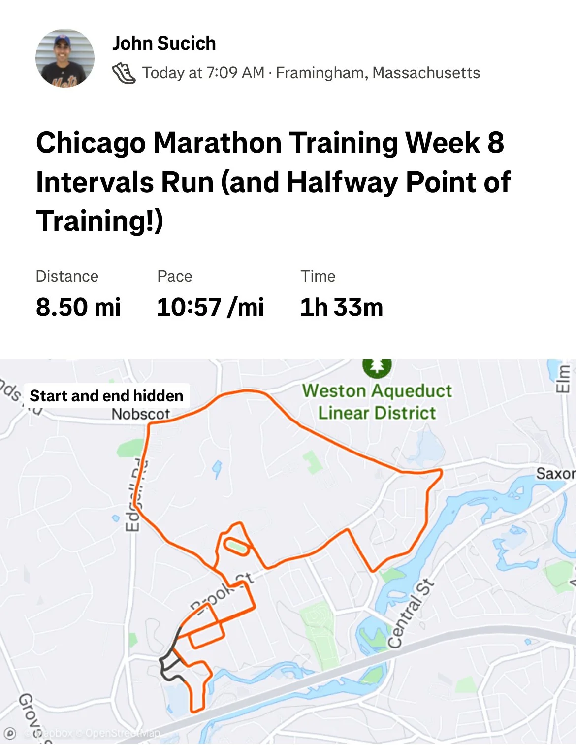 If I had, I might have highlighted the fact that this past Wednesday marked the halfway point of this marathon training session for me.